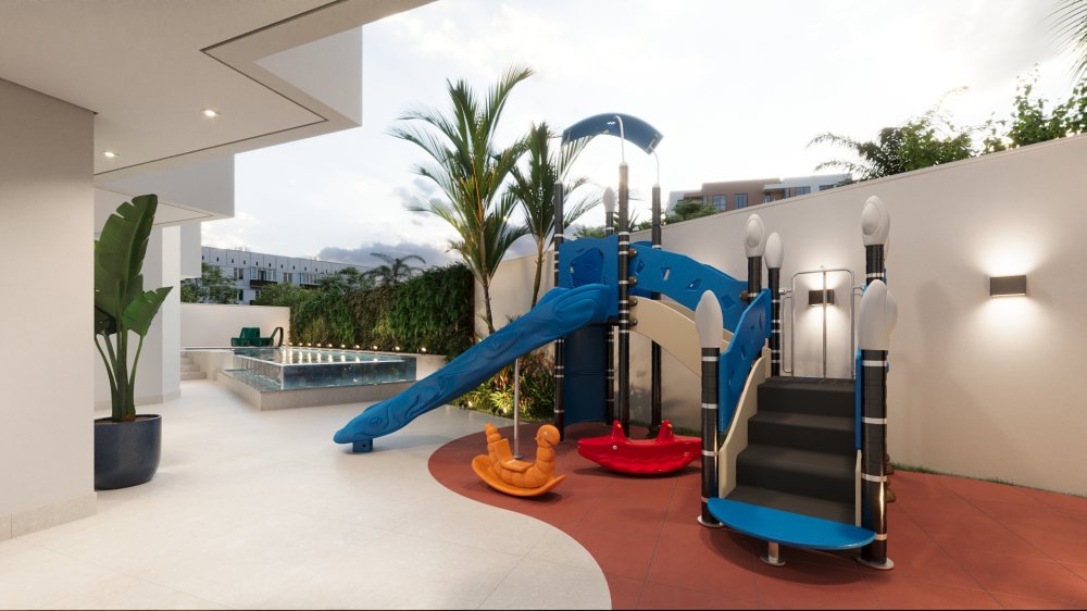 Espaço destinado ao Playground: Espaço seguro e divertido para as crianças.