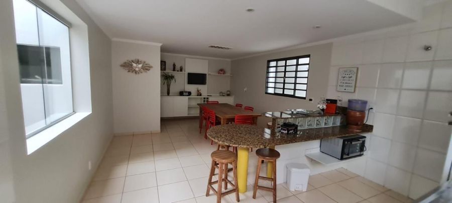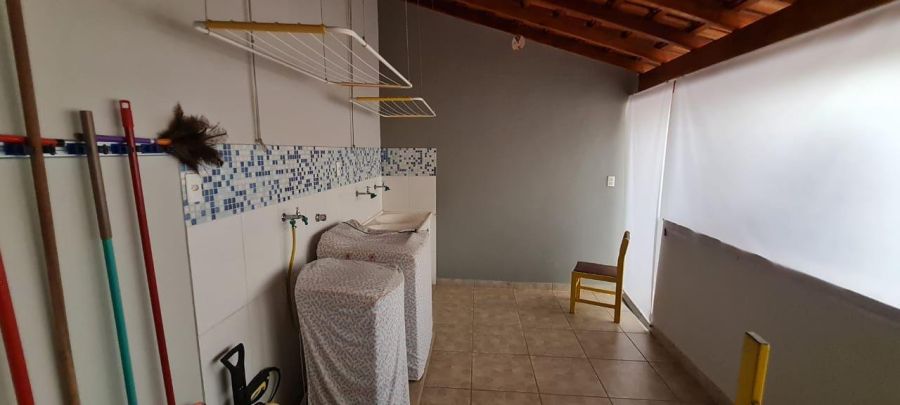 Área gourmet completa com pia, churrasqueira e lavabo, ideal para receber amigos e familiares. O jardim com iluminação decorativa valoriza o espaço externo. Possui ainda quarto de despejo e lavanderia ampla.